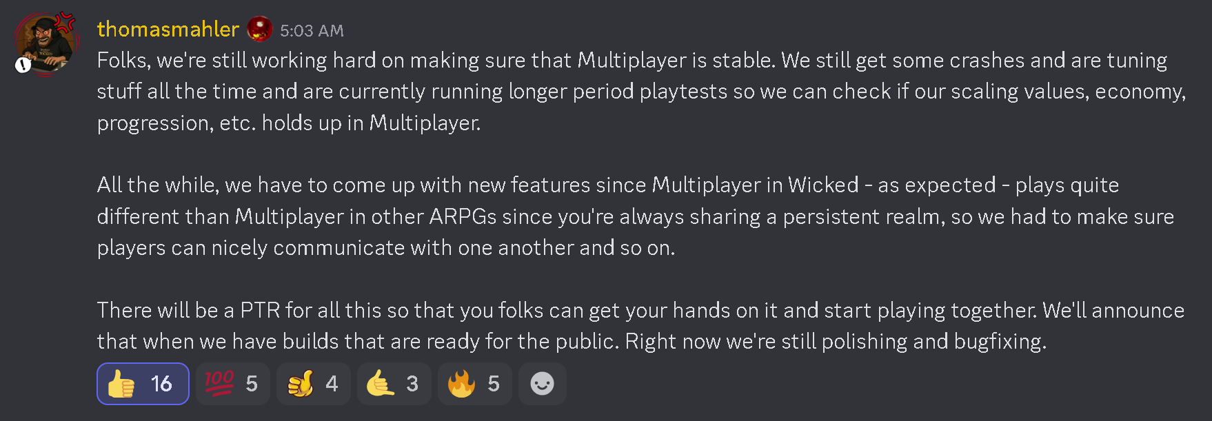 Remember that there are different work departments. Thomas has said that multiplayer it’s about technology and adjustment with quantum (a 3rd party) and not development.
